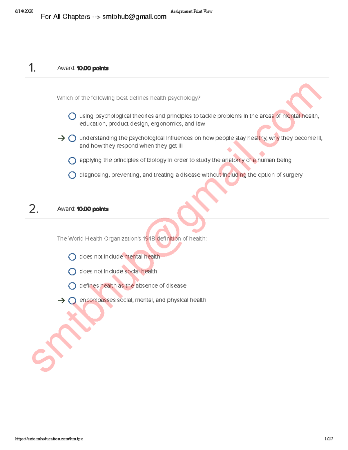 Solutions Manual Test Bank For Health Psychology 11th Edition By Taylor 1 Award 10 Points 2 Studocu